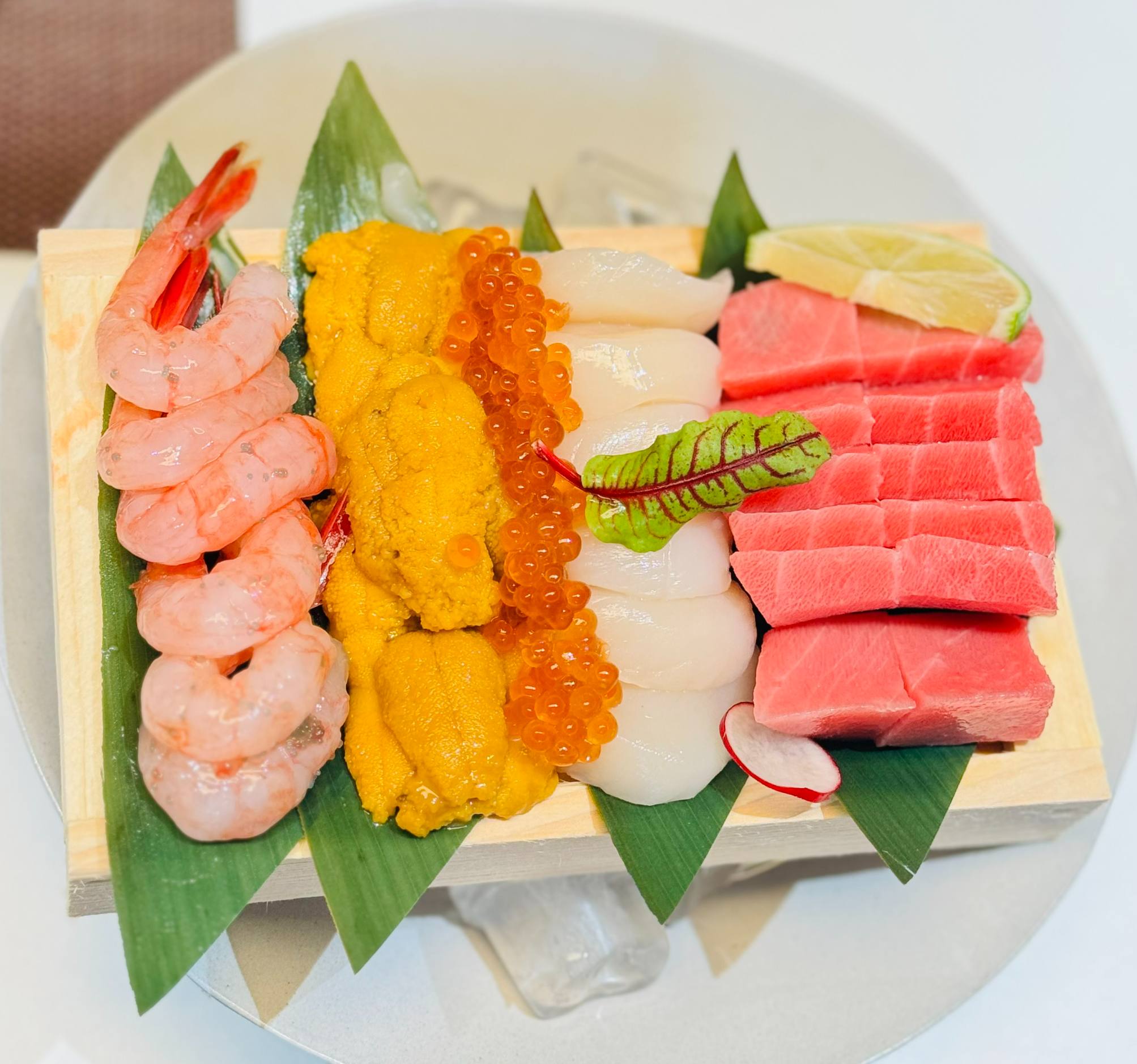 ✔ 구성: 우니, 참치 뱃살(도로), 연어알(이쿠라), 관자, 새우(에비)